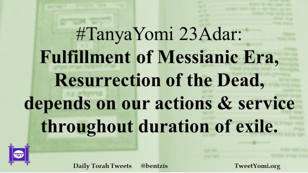 #TanyaYomi 23Adar: Fulfillment of Messianic Era, Resurrection of the Dead, depends on our actions & service throughout duration of exile.