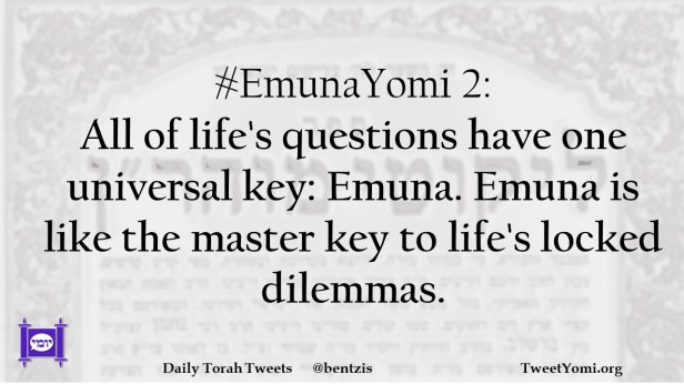 EmunaYomi #EmunaYomi 2 Date: July 4, 2021Author: ysspitz #EmunaYomi 2: All of life’s questions have one universal key: Emuna. Emuna is like the master key to life’s locked dilemmas. Share this: Share on X (Opens in new window) X Share on Facebook (Opens in new window) Facebook Like Loading... Related