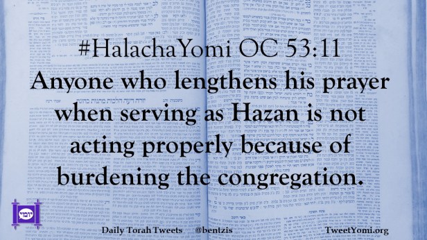 #HalachaYomi OC 53:11 Anyone who lengthens his prayer when serving as Hazan is not acting properly because of burdening the congregation.