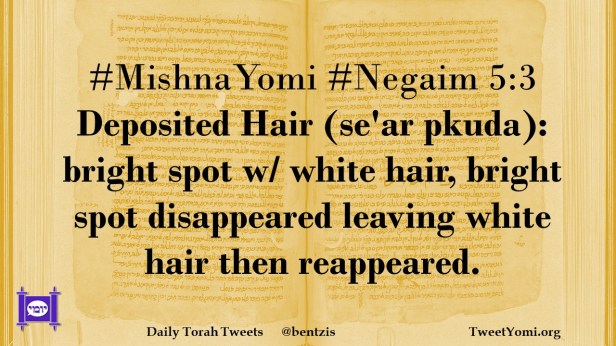 #MishnaYomi #Negaim 5:3 Deposited Hair (se’ar pkuda): bright spot w/ white hair, bright spot disappeared leaving white hair then reappeared.