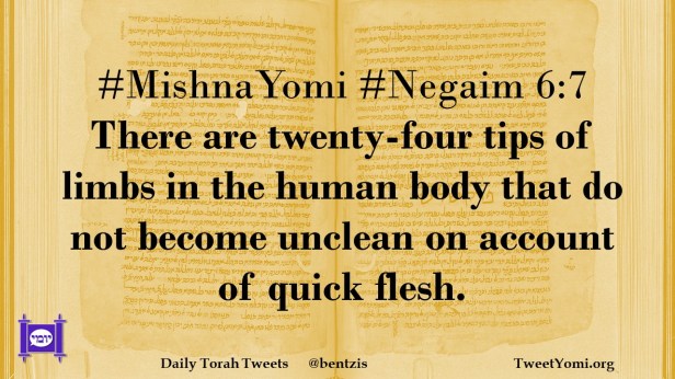 #MishnaYomi #Negaim 6:7 There are twenty-four tips of limbs in the human body that do not become unclean on account of quick flesh.
