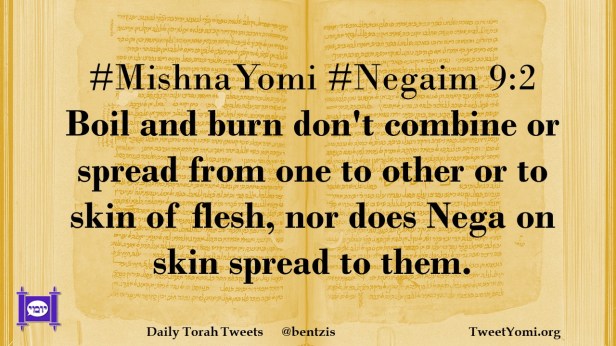 #MishnaYomi #Negaim 9:2 Boil and burn don’t combine or spread from one to other or to skin of flesh, nor does Nega on skin spread to them.