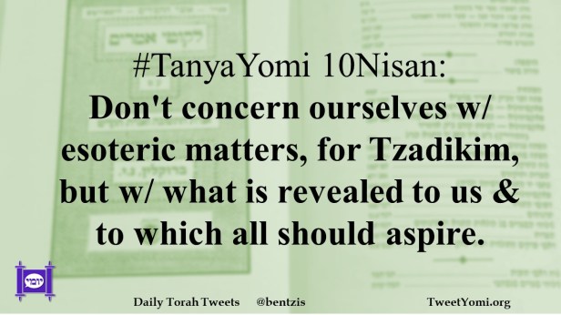 #TanyaYomi 10Nisan: Don’t concern ourselves w/ esoteric matters, for Tzadikim, but w/ what is revealed to us & to which all should aspire.