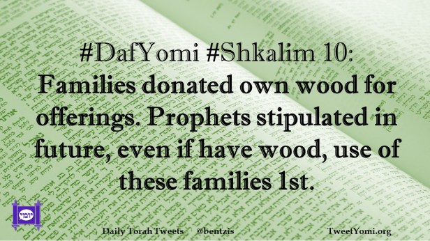 DafYomi, Shkalim #DafYomi #Shkalim 10 Date: July 11, 2021Author: ysspitz #DafYomi #Shkalim 10: Families donated own wood for offerings. Prophets stipulated in future, even if have wood, use of these families 1st. Share this: Share on X (Opens in new window) X Share on Facebook (Opens in new window) Facebook Like Loading... Related