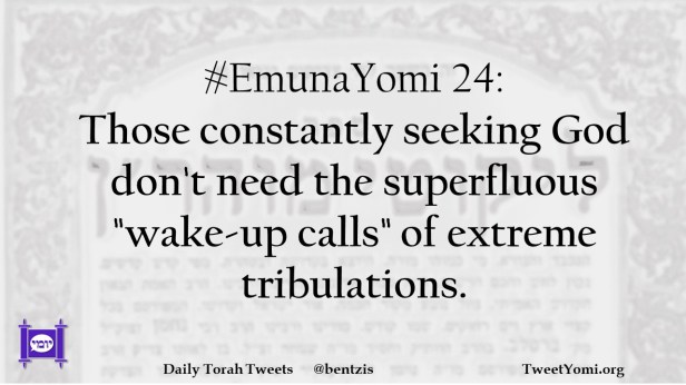 EmunaYomi #EmunaYomi 24 Date: July 12, 2021Author: ysspitz #EmunaYomi 24: Those constantly seeking God don’t need the superfluous “wake-up calls” of extreme tribulations. Share this: Share on X (Opens in new window) X Share on Facebook (Opens in new window) Facebook Like Loading... Related