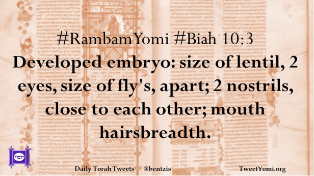 #RambamYomi #Biah 10:3 Developed embryo: size of lentil, 2 eyes, size of fly’s, apart; 2 nostrils, close to each other; mouth hairsbreadth.