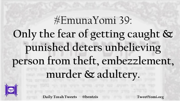 #EmunaYomi 39: Only the fear of getting caught & punished deters unbelieving person from theft, embezzlement, murder & adultery.