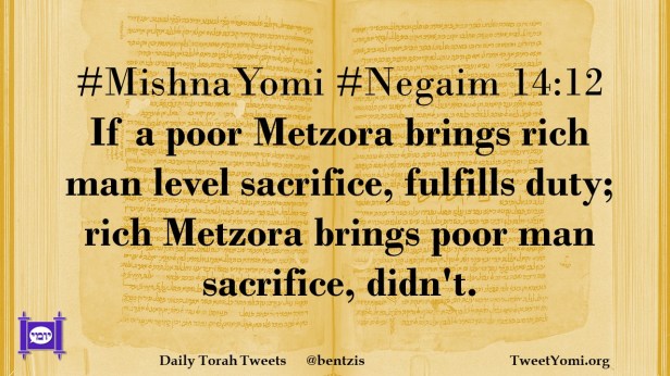 #MishnaYomi #Negaim 14:12 If a poor Metzora brings rich man level sacrifice, fulfills duty; rich Metzora brings poor man sacrifice, didn’t.