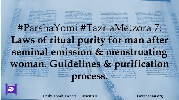 #ParshaYomi #TazriaMetzora 7: Laws of ritual purity for man after seminal emission & menstruating woman. Guidelines & purification process.