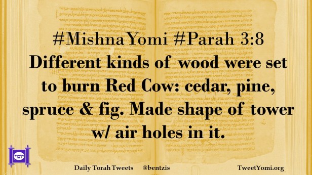 #MishnaYomi #Parah 3:8 Different kinds of wood were set to burn Red Cow: cedar, pine, spruce & fig. Made shape of tower w/ air holes in it.