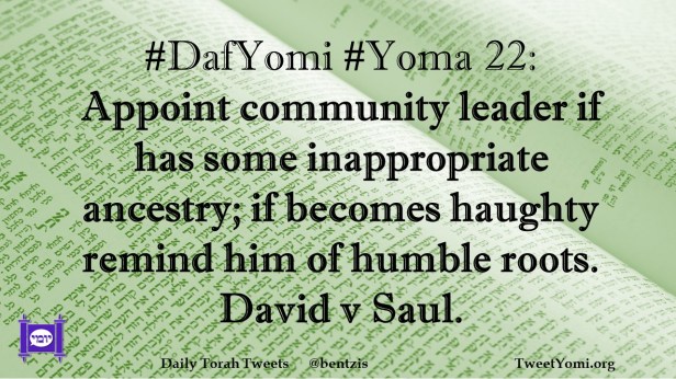 DafYomi, Yoma #DafYomi #Yoma 22 Date: July 22, 2021Author: ysspitz #DafYomi #Yoma 22: Appoint community leader if has some inappropriate ancestry; if becomes haughty remind him of humble roots. David v Saul. Share this: Share on X (Opens in new window) X Share on Facebook (Opens in new window) Facebook Like Loading... Related