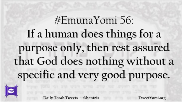 #EmunaYomi 56: If a human does things for a purpose only, then rest assured that God does nothing without a specific and very good purpose.