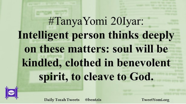 #TanyaYomi 20Iyar: Intelligent person thinks deeply on these matters: soul will be kindled, clothed in benevolent spirit, to cleave to God.
