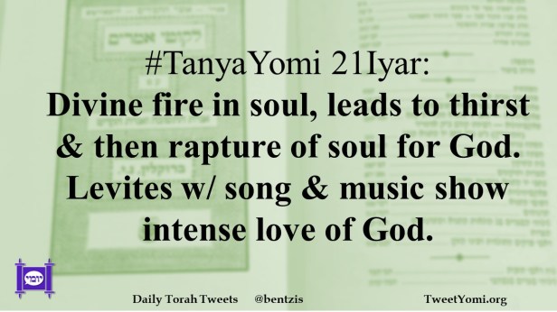 #TanyaYomi 21Iyar: Divine fire in soul, leads to thirst & then rapture of soul for God. Levites w/ song & music show intense love of God.