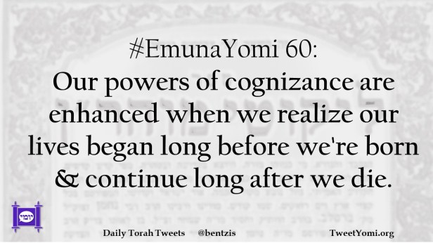 #EmunaYomi 60: Our powers of cognizance are enhanced when we realize our lives began long before we’re born & continue long after we die.