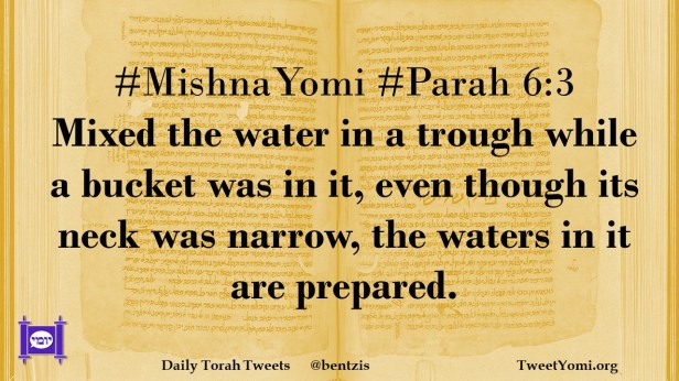 #MishnaYomi #Parah 6:3 Mixed the water in a trough while a bucket was in it, even though its neck was narrow, the waters in it are prepared.