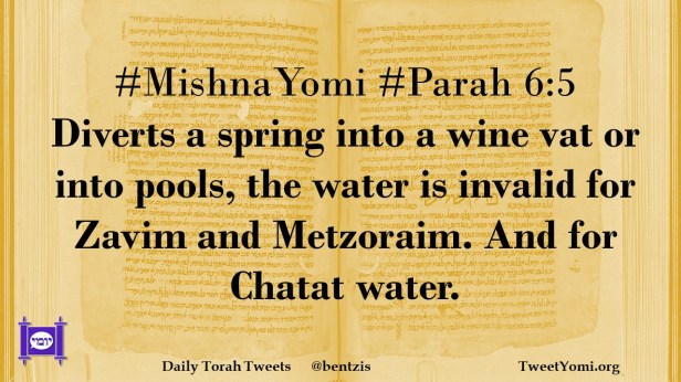 #MishnaYomi #Parah 6:5 Diverts a spring into a wine vat or into pools, the water is invalid for Zavim and Metzoraim. And for Chatat water.