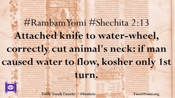 #RambamYomi #Shechita 2:13 Attached knife to water-wheel, correctly cut animal’s neck: if man caused water to flow, kosher only 1st turn.