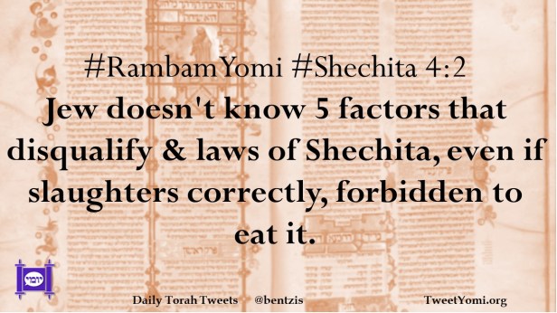 #RambamYomi #Shechita 4:2 Jew doesn’t know 5 factors that disqualify & laws of Shechita, even if slaughters correctly, forbidden to eat it.