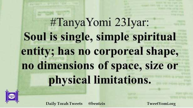 #TanyaYomi 23Iyar: Soul is single, simple spiritual entity; has no corporeal shape, no dimensions of space, size or physical limitations.