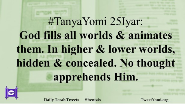 #TanyaYomi 25Iyar: God fills all worlds & animates them. In higher & lower worlds, hidden & concealed. No thought apprehends Him.