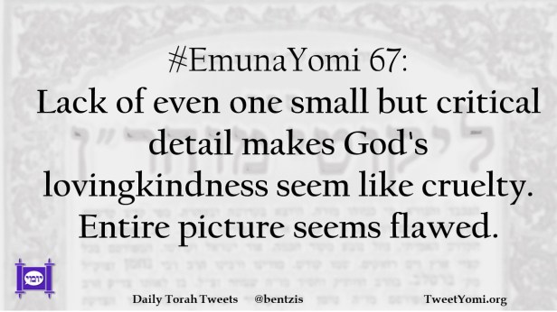 #EmunaYomi 67: Lack of even one small but critical detail makes God’s lovingkindness seem like cruelty. Entire picture seems flawed.
