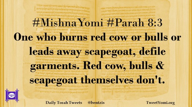#MishnaYomi #Parah 8:3 One who burns red cow or bulls or leads away scapegoat, defile garments. Red cow, bulls & scapegoat themselves don’t.