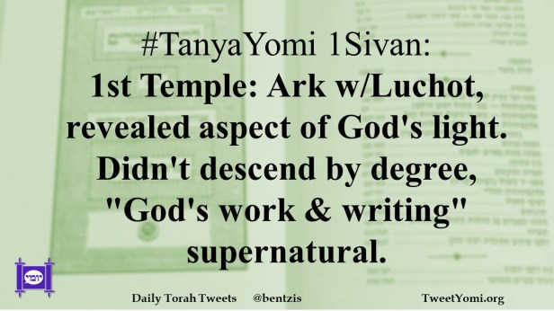 #TanyaYomi 1Sivan: 1st Temple: Ark w/Luchot, revealed aspect of God’s light. Didn’t descend by degree, “God’s work & writing” supernatural.