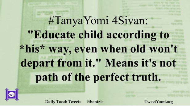 #TanyaYomi 4Sivan: “Educate child according to *his* way, even when old won’t depart from it.” Means it’s not path of the perfect truth.