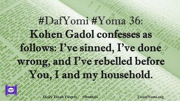 DafYomi, Yoma #DafYomi #Yoma 36 Date: July 29, 2021Author: ysspitz #DafYomi #Yoma 36: Kohen Gadol confesses as follows: I’ve sinned, I’ve done wrong, and I’ve rebelled before You, I and my household. Share this: Share on X (Opens in new window) X Share on Facebook (Opens in new window) Facebook Like Loading... Related