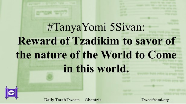TanyaYomi #TanyaYomi 5Sivan Date: July 29, 2021Author: ysspitz #TanyaYomi 5Sivan: Reward of Tzadikim to savor of the nature of the World to Come in this world. Share this: Share on X (Opens in new window) X Share on Facebook (Opens in new window) Facebook Like Loading... Related