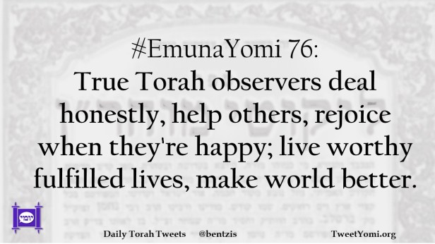 #EmunaYomi 76: True Torah observers deal honestly, help others, rejoice when they’re happy; live worthy fulfilled lives, make world better.