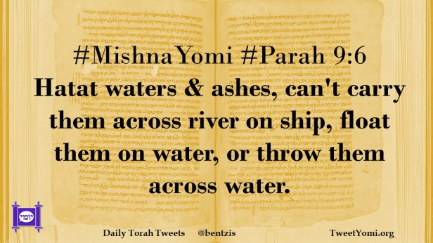 #MishnaYomi #Parah 9:6 Hatat waters & ashes, can’t carry them across river on ship, float them on water, or throw them across water.