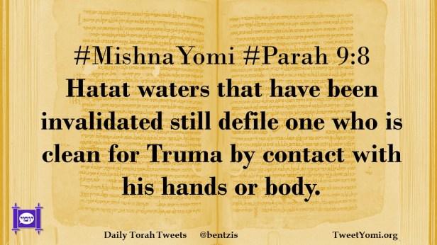 #MishnaYomi #Parah 9:8 Hatat waters that have been invalidated still defile one who is clean for Truma by contact with his hands or body.