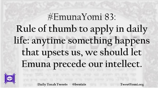 #EmunaYomi 83: Rule of thumb to apply in daily life: anytime something happens that upsets us, we should let Emuna precede our intellect.