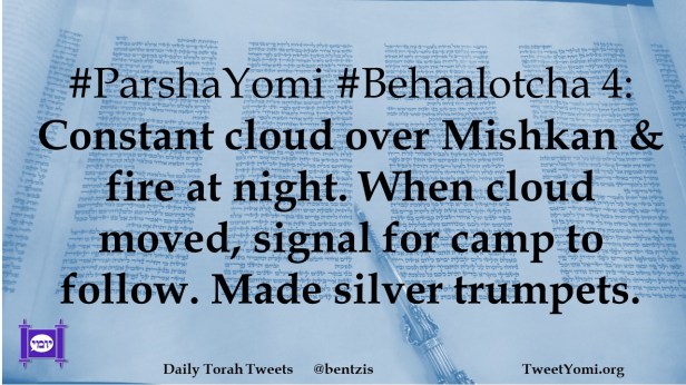 #ParshaYomi #Behaalotcha 4: Constant cloud over Mishkan & fire at night. When cloud moved, signal for camp to follow. Made silver trumpets.
