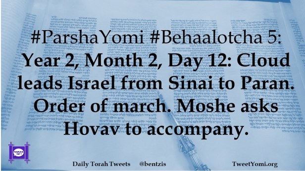 #ParshaYomi #Behaalotcha 5: Year 2, Month 2, Day 12: Cloud leads Israel from Sinai to Paran. Order of march. Moshe asks Hovav to accompany.