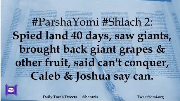 #ParshaYomi #Shlach 2: Spied land 40 days, saw giants, brought back giant grapes & other fruit, said can’t conquer, Caleb & Joshua say can.