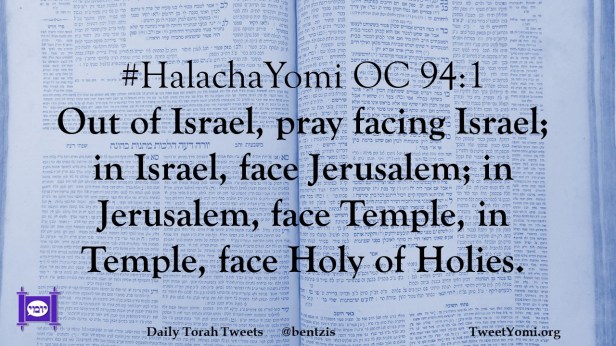 #HalachaYomi OC 94:1 Out of Israel, pray facing Israel; in Israel, face Jerusalem; in Jerusalem, face Temple; Temple, face Holy of Holies.