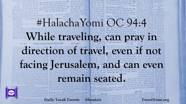 #HalachaYomi OC 94:4 While traveling, can pray in direction of travel, even if not facing Jerusalem, and can even remain seated.