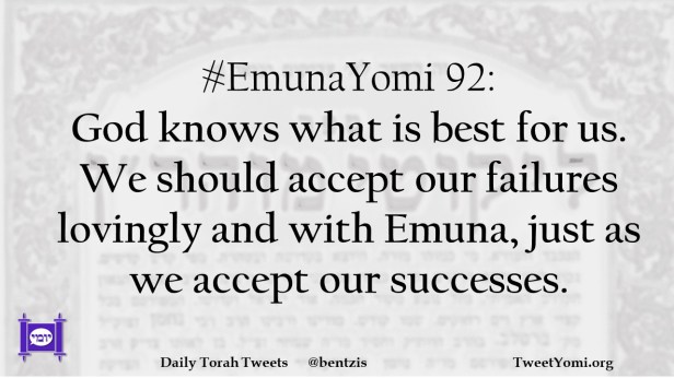 #EmunaYomi 92: God knows what is best for us. We should accept our failures lovingly and with Emuna, just as we accept our successes.