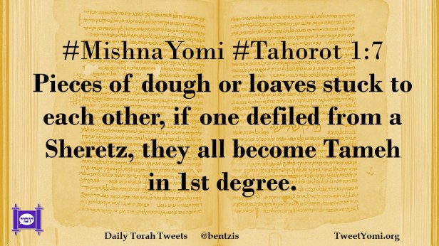 #MishnaYomi #Tahorot 1:7 Pieces of dough or loaves stuck to each other, if one defiled from a Sheretz, they all become Tameh in 1st degree.