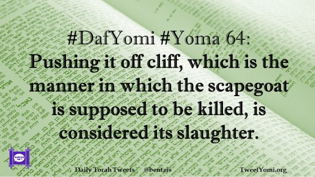 DafYomi, Yoma #DafYomi #Yoma 64 Date: August 5, 2021Author: ysspitz #DafYomi #Yoma 64: Pushing it off cliff, which is the manner in which the scapegoat is supposed to be killed, is considered its slaughter. Share this: Share on X (Opens in new window) X Share on Facebook (Opens in new window) Facebook Like Loading... Related