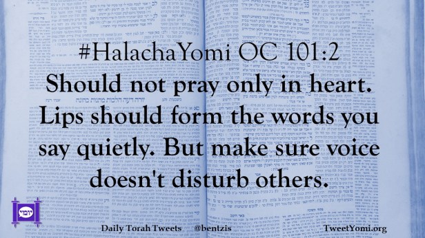 #HalachaYomi OC 101:2 Should not pray only in heart. Lips should form the words you say quietly. But make sure voice doesn’t disturb others.