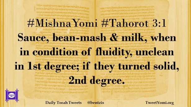 #MishnaYomi #Tahorot 3:1 Sauce, bean-mash & milk, when in condition of fluidity, unclean in 1st degree; if they turned solid, 2nd degree.