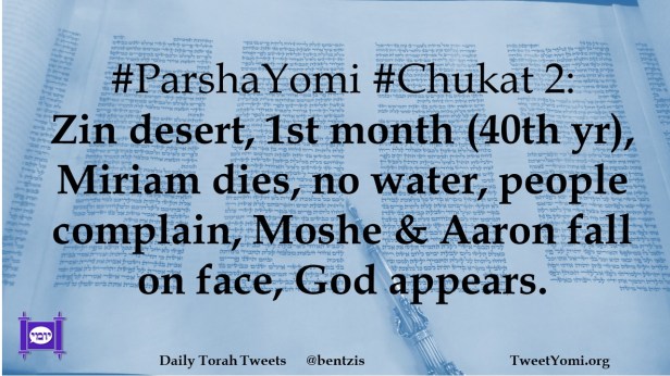 #ParshaYomi #Chukat 2: Zin desert, 1st month (40th yr), Miriam dies, no water, people complain, Moshe & Aaron fall on face, God appears.