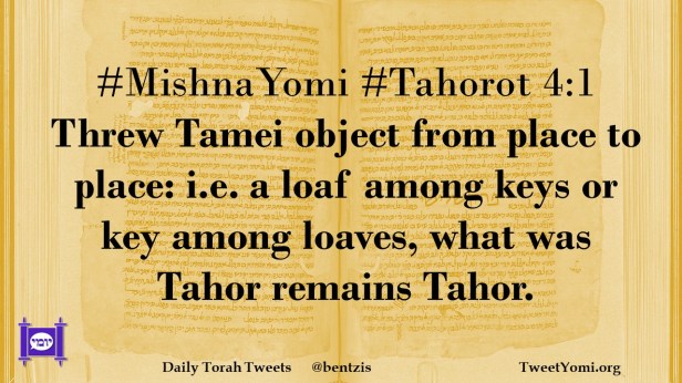 #MishnaYomi #Tahorot 4:1 Threw Tamei object from place to place: i.e. a loaf among keys or key among loaves, what was Tahor remains Tahor.