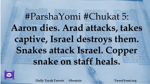 #ParshaYomi #Chukat 5: Aaron dies. Arad attacks, takes captive, Israel destroys them. Snakes attack Israel. Copper snake on staff heals.