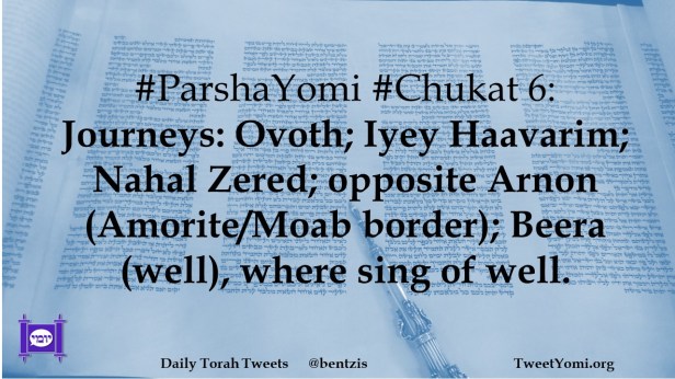 #ParshaYomi #Chukat 6: Journeys: Ovoth; Iyey Haavarim; Nahal Zered; opposite Arnon (Amorite/Moab border); Beera (well), where sing of well.