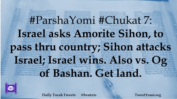 #ParshaYomi #Chukat 7: Israel asks Amorite Sihon, to pass thru country; Sihon attacks Israel; Israel wins. Also vs. Og of Bashan. Get land.